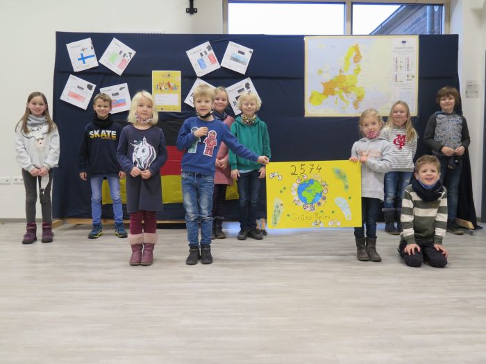 Unsere Schülerinnen und Schüler haben vor den Herbstferien fleißig „Grüne Meilen“ gesammelt, um sie den Delegierten der nächsten Klimakonferenz im schottischen Glasgow zu schicken. Mit dieser weltweiten Aktion von Kindern aus vielen Ländern soll den Verantwortlichen signalisiert werden, dass auch kleine Erdbewohner sich Gedanken um unser Klima machen und etwas in Bewegung bringen können. Von der Energieregion Hümmling beteiligten sich zahlreiche Schulen an dem Projekt. Frau Klaffke, die Klimaschutzmanagerin der Energieregion Hümmling, wird die gesammelten Meilen an die deutsche Delegation für Glasgow schicken. Diese nimmt sie dann zur Klimaschutzkonferenz, die vom 1. bis 12. November 2021 stattfindet, mit. Die Schülerinnen und Schüler auf dem Bild stehen stellvertretend für unsere fleißigen Meilensammler. Das Weltklima sagt Dankeschön. Nachahmung empfohlen!
