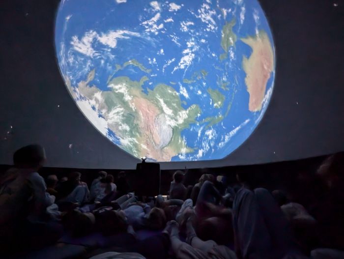 Ein fester Bestandteil des Projekttages war für jedes Kind der Besuch des Planetariums. In der Kuppel präsentierte Herr Weidenbach altersgerecht Inhalte zum Thema Weltall und Sonnensystem. Er hat es verstanden, individuell auf die Lerngruppen einzugehen und die Kinder dort abzuholen, wo sie in Bezug auf das Themenfeld standen. Für die SchülerInnen war der Besuch eine sehr besondere Erfahrung und nahezu alle waren begeistert. Ein paar Kinder berichteten allerdings auch davon, dass ihnen etwas schwindelig und übel von der Vorstellung geworden sei. Es folgen einige SchülerInnenreaktionen: