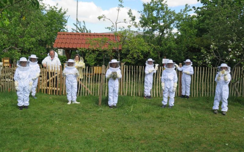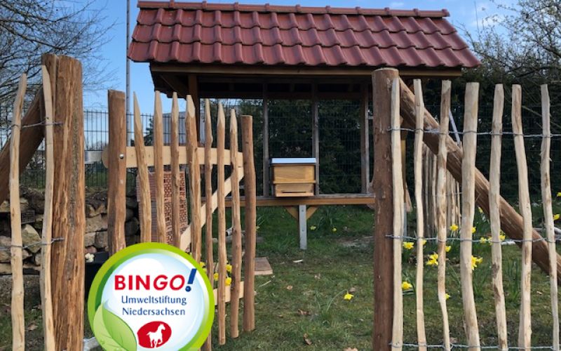 Abstand halten? Bloß nicht! Im Leben der Honigbiene kann es nicht eng genug sein! Das können unsere Schülerinnen und Schüler seit einiger Zeit hautnah aufdem Schulgelände beobachten. Denn die Niedersächsische Bingo-Umweltstiftung hat uns 6.500 € für den Aufbau und Betrieb einer Schulimkerei zur Verfügung gestellt. Im Gegensatz zum jetzt wichtigen allgemeinen Abstandsgebot für die Menschen, liebt es die europäische Honigbiene (Apis mellifera) möglichst eng. Wenn im Hochsommer bis zu 50.000 Bienen im Stock ihre Arbeit verrichten und fleißig Honig sammeln, können die Schülerinnen und Schüler der Grundschule als Forscher unmittelbar Einblicke in den faszinierenden Organismus des Bien (so wird das Volk fachmännisch bezeichnet) gewinnen. Seit über einem Jahr laufen die Vorbereitungen an der Grundschule, um dieses Projekt in die Tat umzusetzen. Zuerst ließen sich Frau Blömer, Frau Schmitz und Herr Schröer von Hans Theo Jansen, der weit über die Grenzen von Börger hinaus als anerkannter Bienenexperte gilt, zum Imker ausbilden. Es wurde ein Kooperationsvertrag mit dem Imkerverein Hümmling geschlossen und ein Konzept für den Betrieb einer Schulimkerei auf den Weg gebracht. Die Imker aus Börger unter dem Vorsitz von Rudi Schmitz werden uns in unserer Arbeit mit Rat und Tat unterstützen und so auch die notwendige und gewünschte Vernetzung „nach draußen“ gewährleisten. Unsere Schule besitzt einen – wie wir finden – wunderschönen Apfelgarten und dort passt ein Bienenstand genau hin. Hier gibt es ein vielschichtiges Betätigungsfeld unter der überaus wichtigen Aufgabe der Bildungseinrichtung zum Stichpunkt BNE (Bildung für Nachhaltige Entwicklung). Aber erst durch die großzügige Unterstützung der Bingo-Umweltstiftung können die Ideen der Schule umgesetzt werden. Drei Völker fliegen nun fleißig in der Umgebung umher und sorgen dafür, dass die Blüten der Pflanzen in Börger und Umgebung bestäubt werden. Die Unterrichtsthemen, die die Lehrer im Rahmen des Sachkundefaches mit den Kindern erarbeiten, werden durch Informationsschilder für jedermann in einem Bienenlehrpfad auf dem Bienenstand ergänzt. Dort können auch alle praktischen Arbeiten, die im Laufe des Bienenjahres anfallen, mit den Schülerinnen und Schülern durchgeführt werden. Dafür wurde eine Grundausstattung für Jungimker angeschafft, die von Schutzkleidung über Gerätschaften zur Pflege über die Beuten bis zur Honigernte und Wachsverarbeitung reicht. Ob die Schülerinnen und Schüler gleich im ersten Imkerjahr schon Honig ernten können, hängt von der Entwicklung der Völker, von den Bedingungen in der Natur und letztendlich auch von der Pflege der Völker ab. Wir warten gespannt! Was aber jetzt schon zu spüren ist: Dieses Projekt begeistert die ganze Schulgemeinschaft und der Wunsch, sich als Forscher und als Verantwortlicher für ein artgemäßes Imkern, für die Natur, die Umwelt und damit auch für die eigene Zukunft einzusetzen, ist überall spürbar. Auch die Verantwortlichen sind der festen Überzeugung, dass dieses langfristige und nachhaltige Projekt der Grundschule sich über alle Fächer hinweg zu einem wichtigen Element für das pädagogische Wirken entwickeln wird.